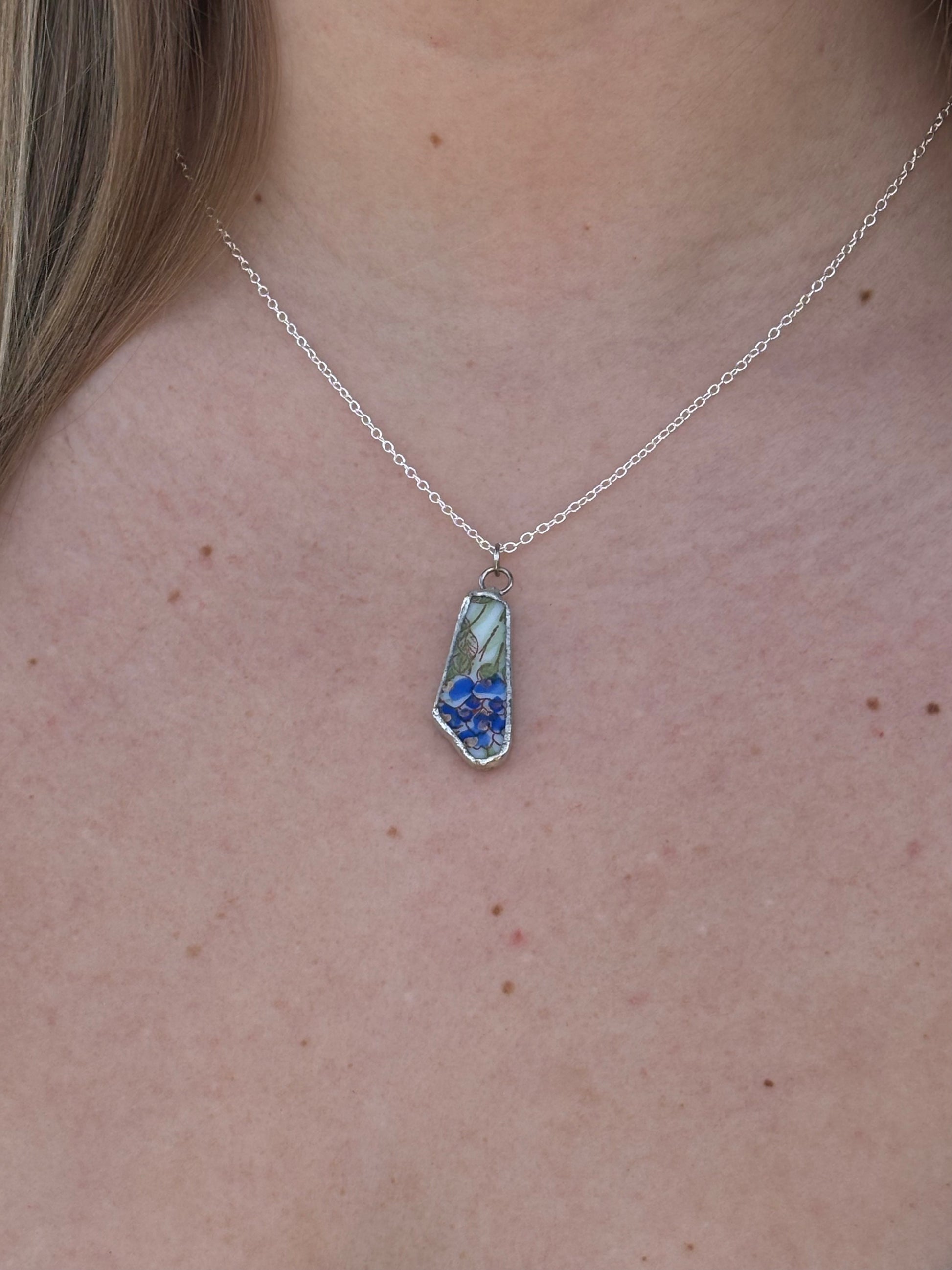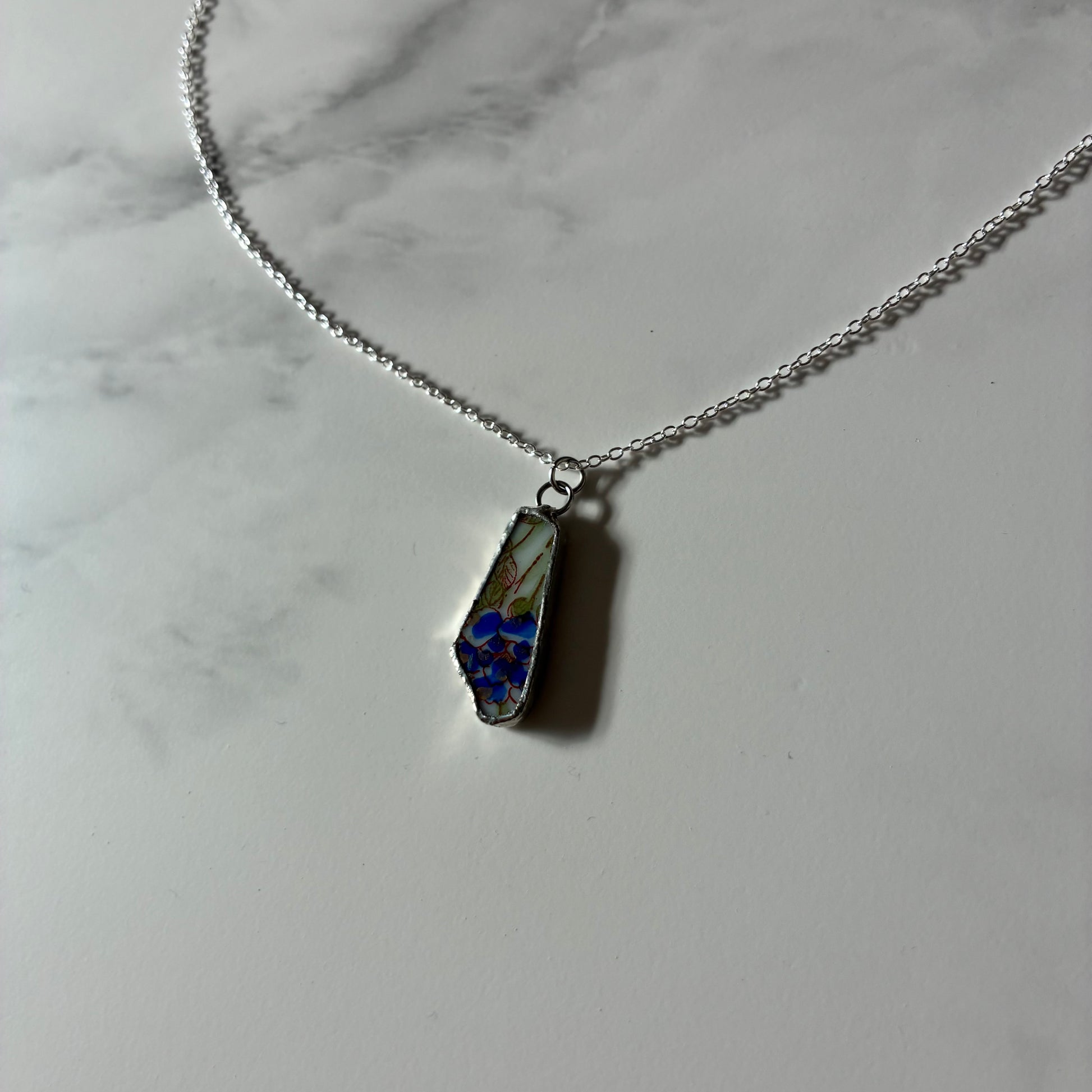 Flora Blue Ceramic Pendant Necklace